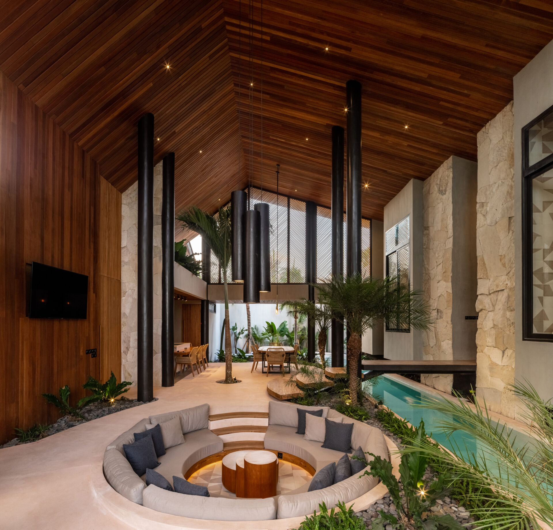 The villa boasts a refreshing swimming pool, perfect for catching some rays and taking a relaxing swim. You can also indulge in the outdoor pool surrounded by comfortable lounge sofas, creating an integrated indoor-outdoor space for entertaining guests.